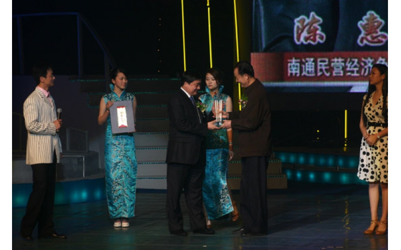 2007年3月30日,南通更俗劇院。南通民營經濟爭創(chuàng)“名企、名品、名人”2006年度人物頒獎晚會隆重舉行。會上,通過初評、公眾投票、專家組評定等程序評選出的12位民營企業(yè)家受到表彰,陳惠董事長榮列其中。南通市政協(xié)主席曹能新為陳惠董事長頒發(fā)榮譽證書和獎杯。