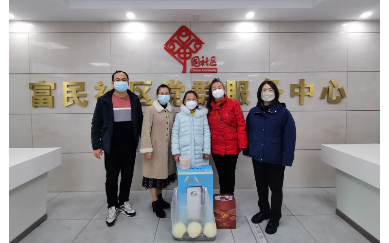 2023年1月12日,在南通市開發(fā)區(qū)富民社區(qū)黨委書記黃愛飛的陪同下,安惠公司副董事長陸漢萍帶著安潔空氣凈化器等物資來到富民社區(qū),幫助陸同學(xué)圓夢。