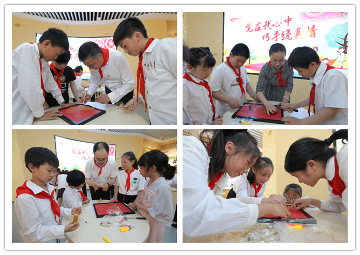 安惠江海志愿者還精心準(zhǔn)備了“黨在我心中,巧手繞真情”的釘子繞線畫活動,用特殊的方式獻(xiàn)禮建黨100周年。陳惠董事長、陸漢萍副董事長、安惠江海志愿者陪同孩子們一起,用一個個釘子、一圈圈繞線做成黨旗、國旗、建黨100周年LOGO等,歌頌中國共產(chǎn)黨的光榮歷史和豐功偉績,表達(dá)偉大祖國繁榮昌盛的美好祝愿。