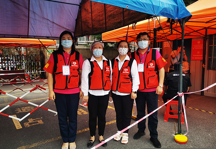 安惠黨委各黨支部在本次全員核酸檢測工作中,一共組織16名黨員干部參與志愿服務(wù)。他們根據(jù)統(tǒng)一安排,分布在核酸檢測點現(xiàn)場的各個崗位,各司其職、各盡其責(zé),全面助力核酸檢測工作。有的在出入口引導(dǎo)等候檢測的群眾;有的在登記區(qū)協(xié)助群眾錄入信息、提醒群眾注意事項和維護(hù)現(xiàn)場秩序;還有的協(xié)助醫(yī)護(hù)人員完成各項后勤保障及消殺工作。通過安惠黨員志愿者和社區(qū)工作人員的有序組織和引導(dǎo),參與檢測的百姓嚴(yán)格按照規(guī)定流程進(jìn)行個人信息登記和核酸檢測采樣,確保了整個核酸檢測工作有序、有效進(jìn)行。