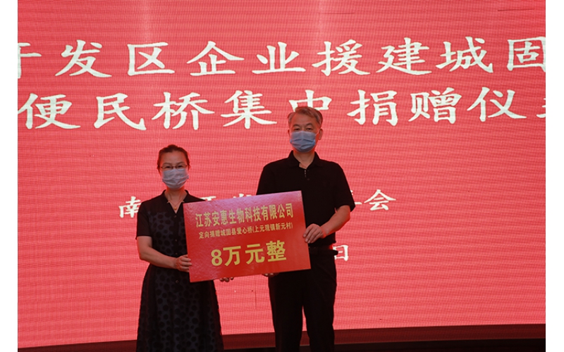陜西省漢中市城固縣是南通開發(fā)區(qū)對口扶貧地區(qū),為鞏固已取得的階段性協(xié)作成果,進(jìn)一步助力鄉(xiāng)村振興,在已經(jīng)援建城固縣山區(qū)7座便民橋的基礎(chǔ)上,今年再捐建12座便民橋。8月,開發(fā)區(qū)慈善會發(fā)出《關(guān)于定向捐贈漢中市城固縣山區(qū)便民橋建設(shè)征集函》,得到了廣大企業(yè)界的積極響應(yīng),短短3天時間共收到包括安惠公司在內(nèi)的12家企業(yè)的定向捐贈回函。