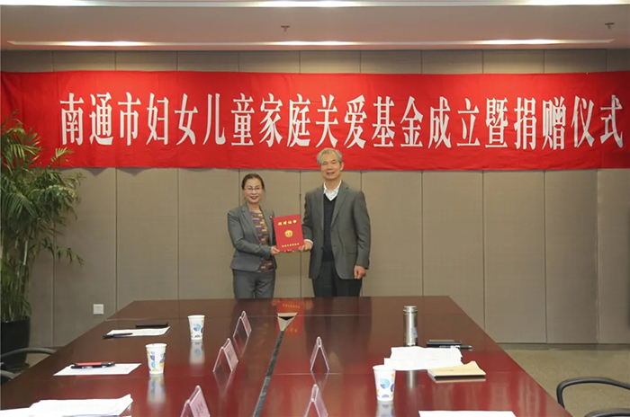 2020年4月20日,南通市婦女兒童家庭關(guān)愛基金成立。南通市女企業(yè)家協(xié)會(huì)副會(huì)長、安惠公司副董事長陸漢萍為基金注入第一筆愛心善款10萬元。